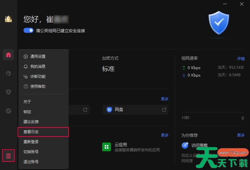 蒲公英软件是一款可以快速组建异地虚拟局域网,实现异地局域网内电脑、手机、服务器的互联互通,共享文档、图片、音频、视频、数据库等重要信息的软件,那么蒲公英软件怎么查看日志?蒲公英软件查看日志的方法?下面就让天天下载Ttzip给大家解答下吧! 蒲公英软件怎么查看日志? 1、打开蒲公英软件,在蒲公英客户端软件的左侧菜单栏中点击“三条杠”设置按钮,然后点击菜单栏的“查看日志”选项。 2、然后你将看到大量的设备日志信息。 以上就是天天下载Ttzip为您整理的蒲公英软件怎么查看日志?蒲公英软件查看日志的操作流程啦,希望能帮到您。 除特别注明外,本站所有文章均为 天天下载 原创,转载请注明出处来自 https://www.ttzip.com/211329.html