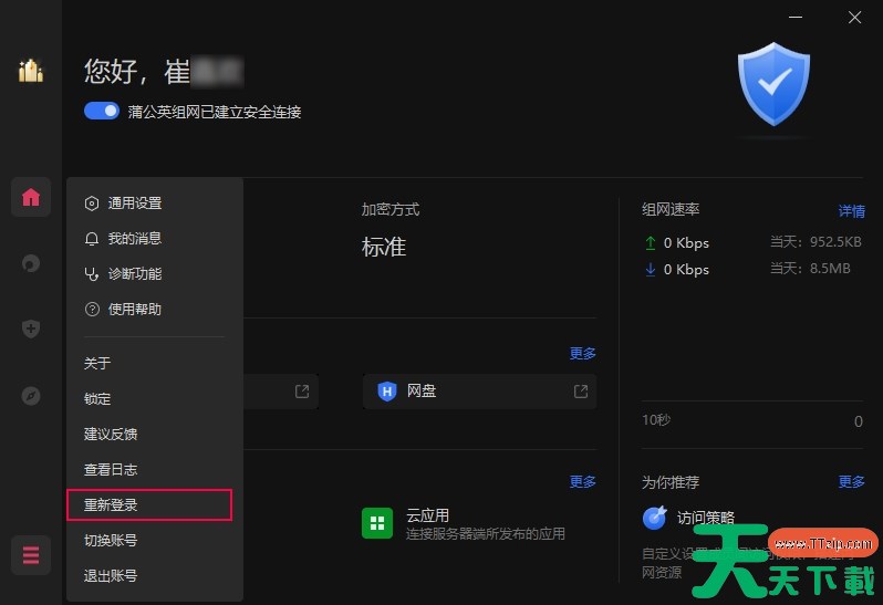蒲公英是由上海贝锐信息科技股份有限公司打造发布的一款简单搭建虚拟局域网的智能组网系统,那么蒲公英软件怎么重新登录?蒲公英软件重新登录的方法?下面就让天天下载Ttzip给大家解答下吧! 蒲公英软件怎么重新登录? 1、打开蒲公英软件,在蒲公英客户端软件的左侧菜单栏中点击“三条杠”设置按钮,然后点击“重新登录”按钮。 2、点击重新登录后系统将会重新建立连接。 以上就是天天下载Ttzip为您整理的蒲公英软件怎么重新登录?蒲公英软件重新登录的操作流程啦,希望能帮到您。 除特别注明外,本站所有文章均为 天天下载 原创,转载请注明出处来自 https://www.ttzip.com/211330.html