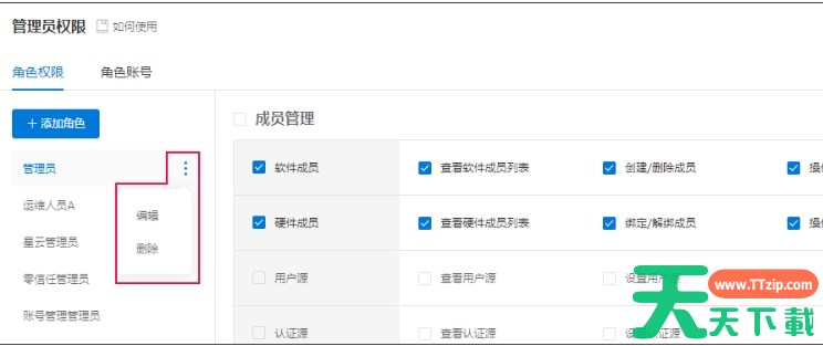 蒲公英软件是由上海贝锐信息科技股份有限公司打造发布的一款简单搭建虚拟局域网的智能组网系统,那么蒲公英软件怎么删除用户?蒲公英软件删除用户的操作流程?下面就让天天下载Ttzip给大家解答下吧! 蒲公英软件怎么删除用户? 1、打开蒲公英软件,在软件的左侧菜单栏中选择【系统管理】—【管理员权限】,点击“角色权限”-“添加角色”,输入“角色名称”,点击确定,角色创建成功。 2、角色创建完成后,点击角色右侧的“三个点”设置按钮,可对角色名称进行删除即可。 以上就是天天下载Ttzip为您整理的蒲公英软件怎么删除用户?蒲公英软件删除用户的操作流程啦,希望能帮到您。 除特别注明外,本站所有文章均为 天天下载 原创,转载请注明出处来自 https://www.ttzip.com/211351.html