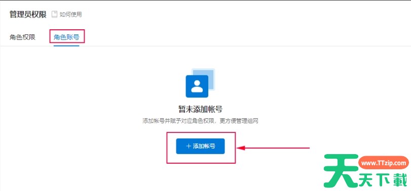 1、在管理平台中,找到“系统管理”菜单,点击“管理员权限”中,然后点击“角色账号”-“添加账号”。
