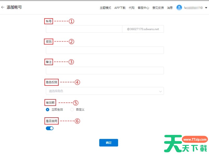 2、然后进行账号相关信息的填写,填写完毕后点击“确定”,账号创建成功。确认账号信息和角色关联无误后,点击“确定”按钮,完成账号的创建和角色关联。