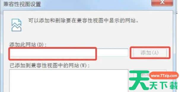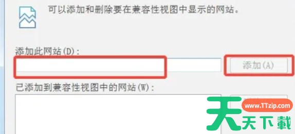 在“添加此网站”文本框中输入需要设置兼容模式的网站地址,然后点击“添加”按钮。可以一次添加一个或多个网站。