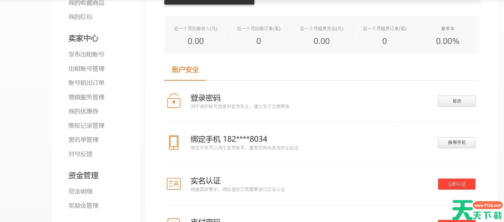 2、登录之后,点击【卖家中心】——【出租账号管理】;