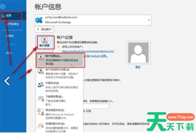 Outlook邮箱操作简单,可以帮助你快速收发邮件。不仅如此Outlook邮箱还可以帮助你管理联系人、安排日程等,为你的生活带来便利。那么Outlook怎么改密码?Outlook修改密码的步骤是什么?下面就让天天下载Ttzip给大家解答下吧! Outlook怎么改密码? 1、打开Outlook邮箱,点击页面左上角的“文件”按钮。 2、在弹出的页面中,依次点击“信息”、“账户设置”、“账户设置”功能。 3、在账户设置的窗口中,找到并点击“更改”功能。 4、在更改账户的页面中,输入新密码,确认后点击“保存”或“确定”按钮。 以上就是天天下载Ttzip为您整理的outlook怎么改密码?outlook修改密码的操作流程啦,希望能帮到您。 除特别注明外,本站所有文章均为 天天下载 原创,转载请注明出处来自 https://www.ttzip.com/211414.html