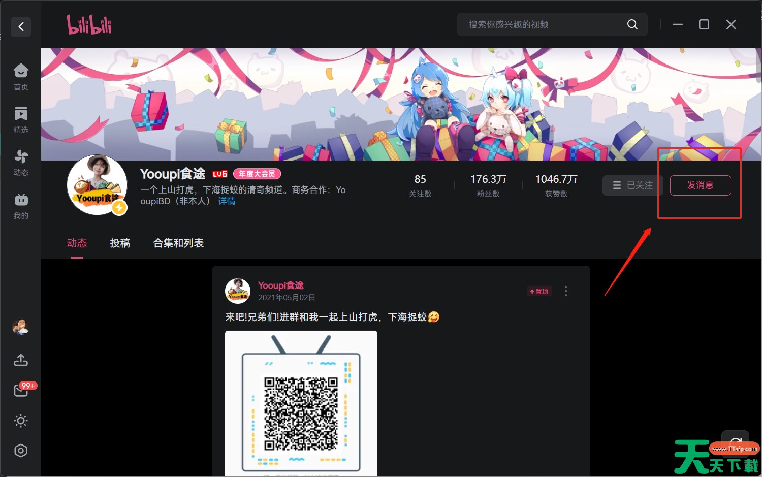 1、点击up主的ID进入他的主页中。 2、点击发消息。 3、在聊天框中输入你想要发的消息就可以了。 以上就是关于bilibili怎么发私信的相关内容,希望对您有所帮助! 除特别注明外,本站所有文章均为 天天下载 原创,转载请注明出处来自 https://www.ttzip.com/211427.html