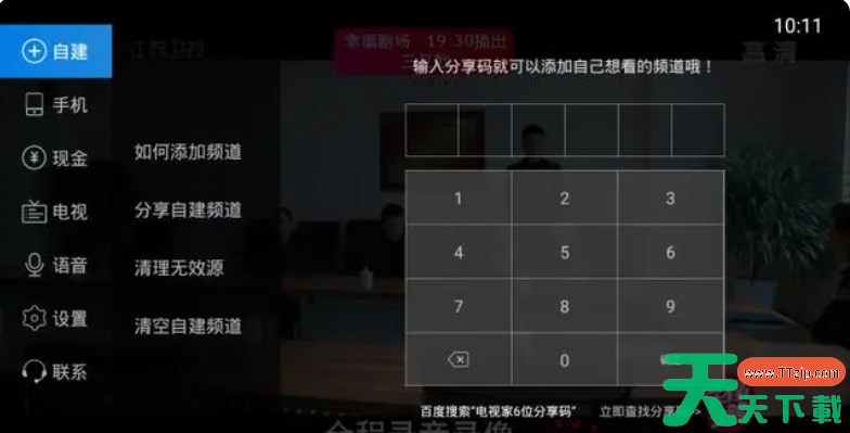 2、输入有效的6位分享码,点击保留即可添加通过分享码分享的自建频道。