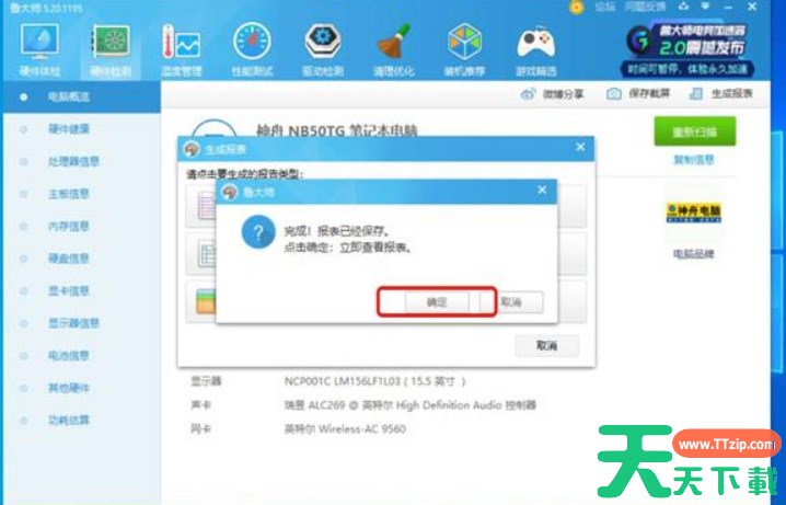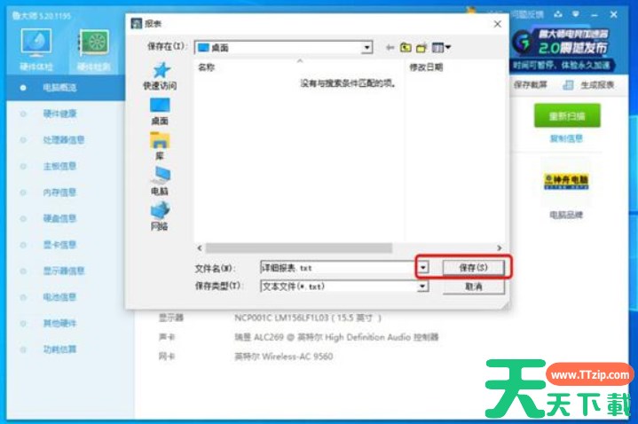 6、鲁大师打开以TXT纯文本格式保存的电脑配置详细信息。