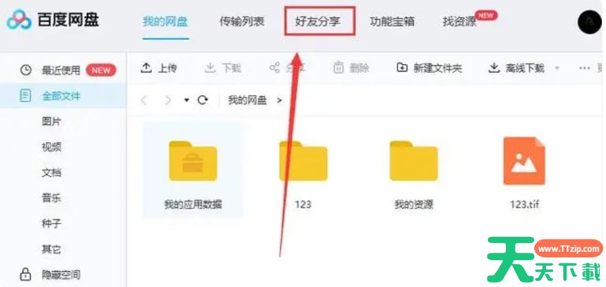 1、首先我们打开电脑上的百度网盘客户端,进入页面后点击上面的“好友分享”;