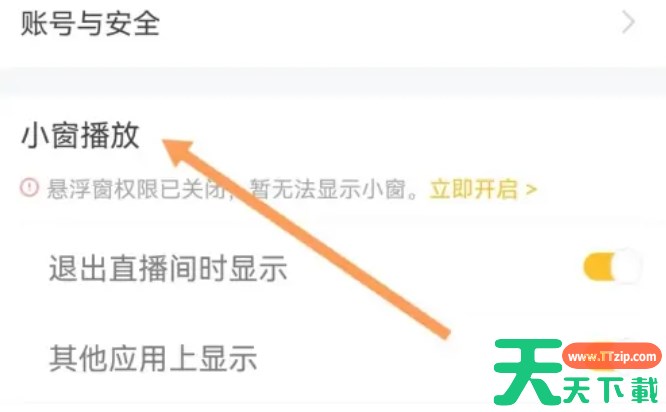 找到“小窗播放”栏,点击开启