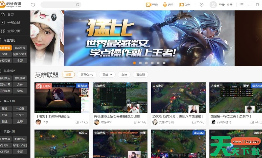 虎牙直播是一个为用户提供高清、流畅而丰富的互动式视频直播服务的直播软件,虎牙直播中拥有上千款游戏的进程,主播开播不用愁。收礼物,游戏内看观众评论,拉近与粉丝的距离。用户可以在软件观看不同的赛事,收录的资源多的超乎想象,个性化的服务设计,能够让用户不错过每一次的直播,非常精彩,接下里就让天天下载Ttzip虎牙直播怎么小窗播放以及虎牙直播怎么调清晰度吧!
