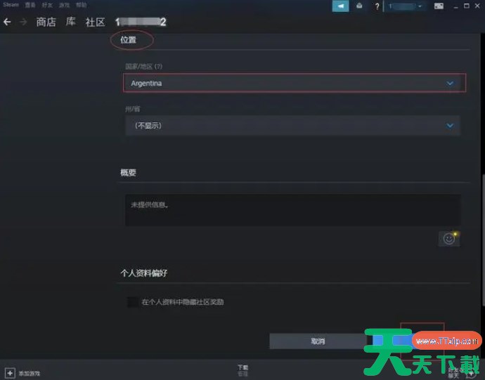 打开steam客户端-右上角【账号】-查看我的个人资料-编辑个人资料-位置-国 家/地 区栏“下拉键”,修改地区之后,记得保存修改。最后再重启steam客 户端,就会发现steam地区已经改了。