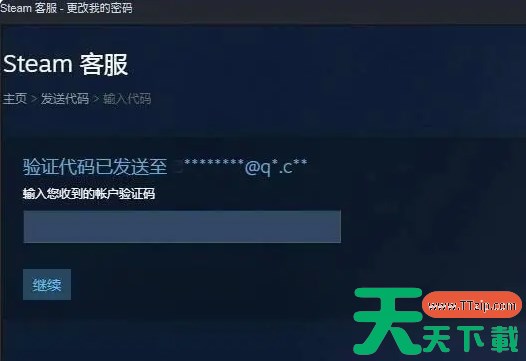 将收到的验证码输入到网站中,点击“继续”即可完成密码修改。