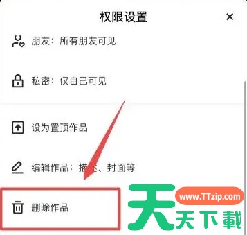 找到“删除作品”选项,点击确定删除即可