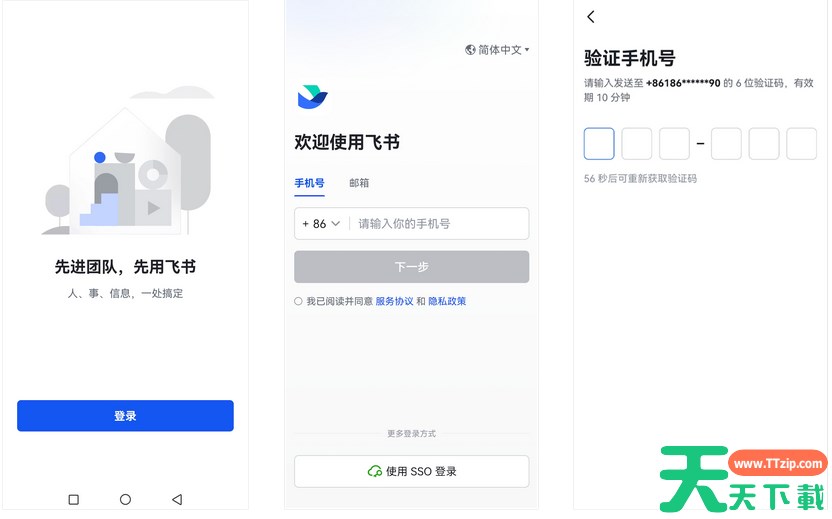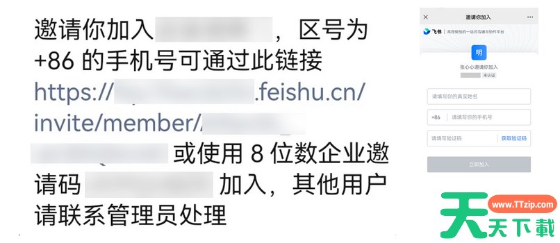 加入成功后,点击 下载 下载飞书客户端。飞书客户端下载并安装完成后,打开客户端,输入手机号并完成验证,即可成功进入该企业,在飞书与企业其他成员高效协作。