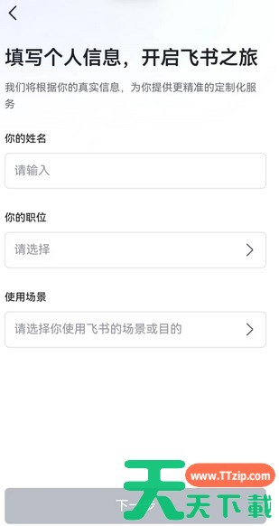 填写 你的姓名,并选择 你的职位,在 使用场景 中选择 员工加入企业,点击 下一步。
