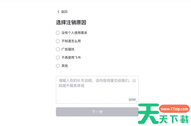 选择注销原因,点击 下一步。