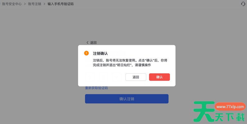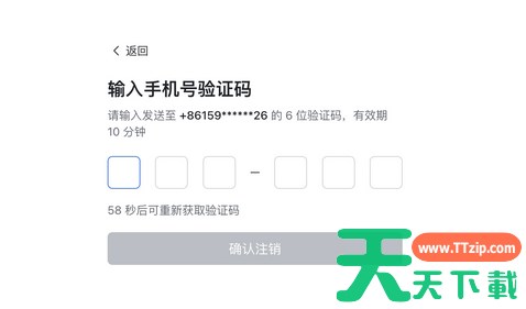 输入验证码完成身份验证,点击 确认注销。