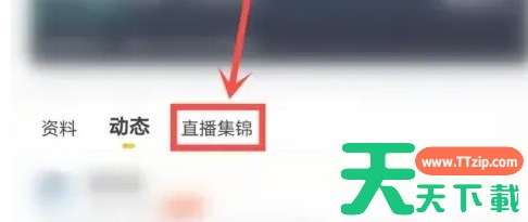 在主播页面“动态”选项的右边有一个“直播集锦”,点击打开