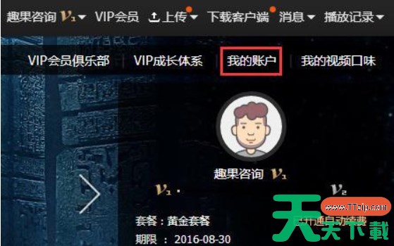 2、打开VIP会员页面,点击页面右上角“我的账户”;