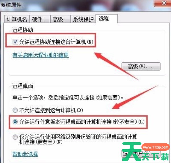 打开远程桌面,找到“允许运行任意版本远程桌面的计算机连接”选项点击确定。