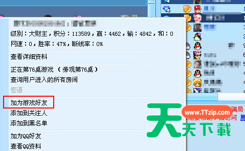 以上就是天天下载Ttzip给大家带来QQ游戏大厅加好友的方法,希望各位小伙伴们通过天天下载Ttzip给的这份小技巧,可以更好地使用这一软件。