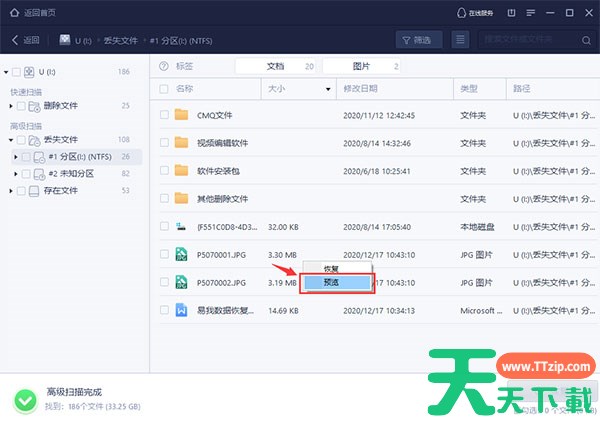在恢复之前,可以先双击打开文件,或者选中文件,右键,选择“预览”,查看某些文件的具体内容,包括视频,音频,图片和文档等。这一步骤对于判断丢失文件是否能正常恢复十分重要。