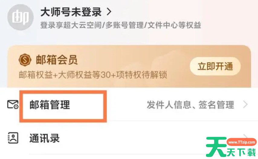 1、在登录网易邮箱后确定邮件地址添加到APP后,在网易邮箱APP后找到“邮箱管理”。
