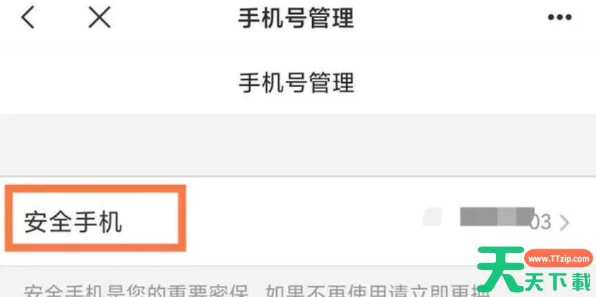 4、进入到手机号管理界面,再次点击“安全手机”,安全手机是我们重要的密保。