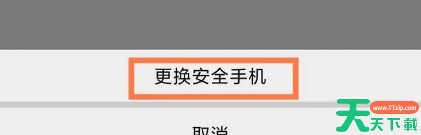 5、点击安全手机后,在底部的弹出页找到“更换安全手机”。