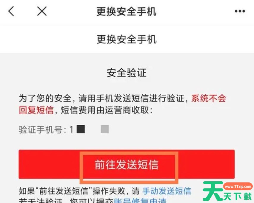 7、当手机号处于还能用的状态时,按照提示“前往发送短信”完成手机短信的验证。