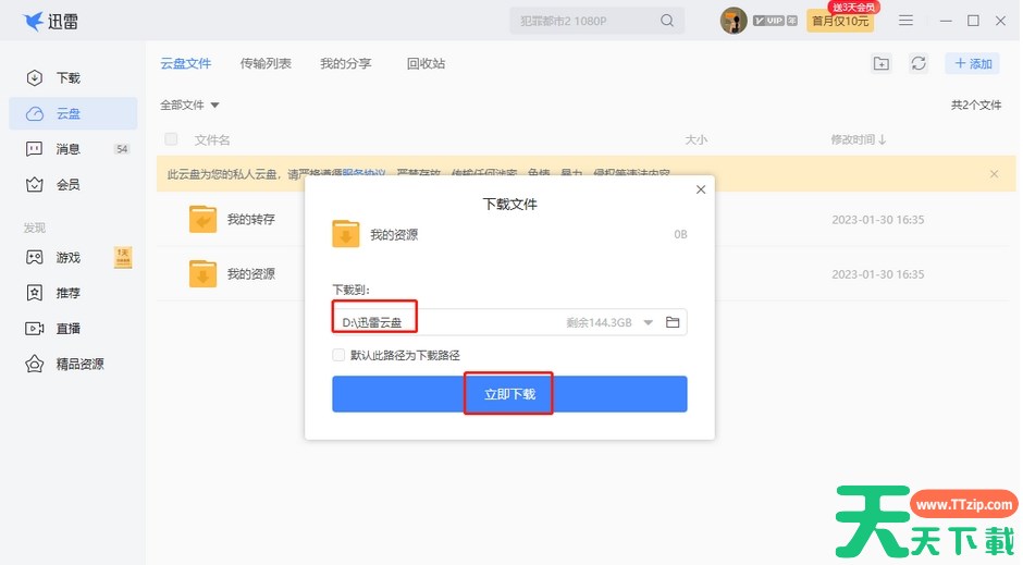 3.在打开的窗口中,选择好自己想要下载的文件的存放位置,然后点击【立即下载】按钮即可。