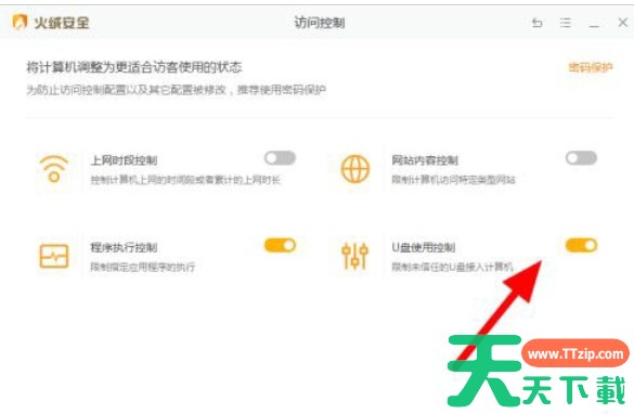 火绒安全软件是一款轻巧高效免费的电脑防御及杀毒类安全软件,那么火绒怎么解除U盘限制?火绒解除U盘限制的操作流程。下面就让天天下载Ttzip给大家解答下吧! 火绒怎么解除U盘限制? 1、在火绒安全软件的首页,寻点击“访问控制”选项。 2、在“访问控制”页面中,你会看到关于U盘使用控制的选项。 3、关闭U盘使用控制即可。 以上就是天天下载Ttzip为您整理的火绒怎么解除U盘限制?火绒解除u盘限制的操作流程啦,希望能帮到您。 除特别注明外,本站所有文章均为 天天下载 原创,转载请注明出处来自 https://www.ttzip.com/211716.html