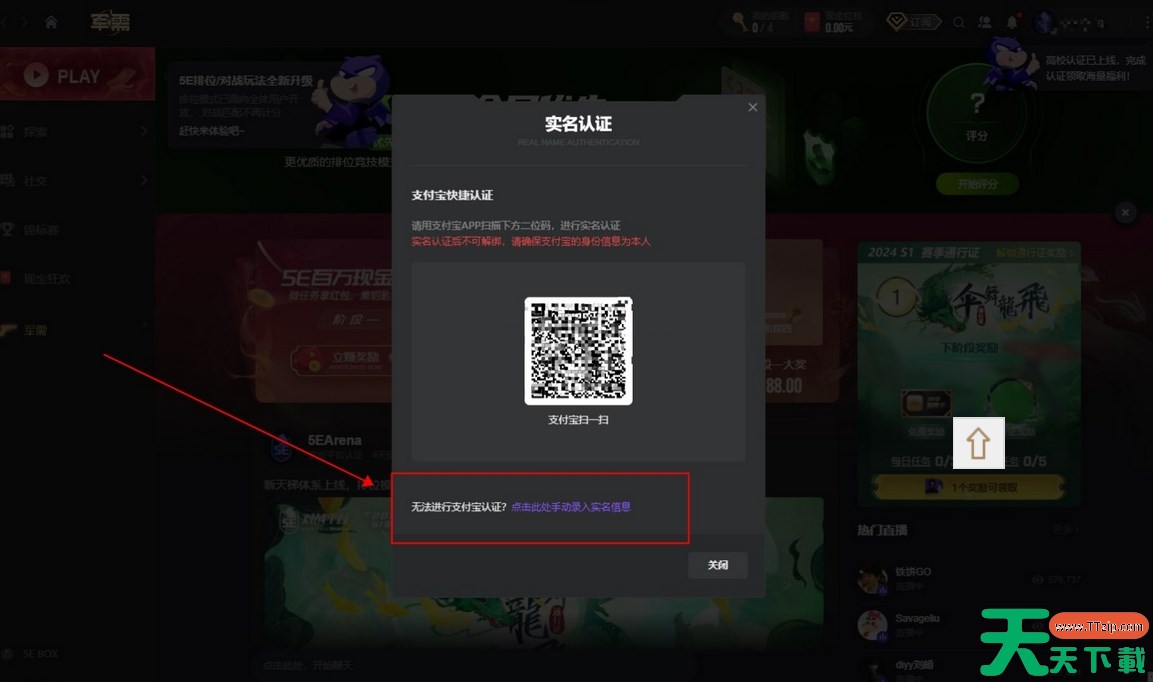 步骤一:在实名认证弹窗内,点击“手动录入实名信息”>进入手动录入实名信息弹窗