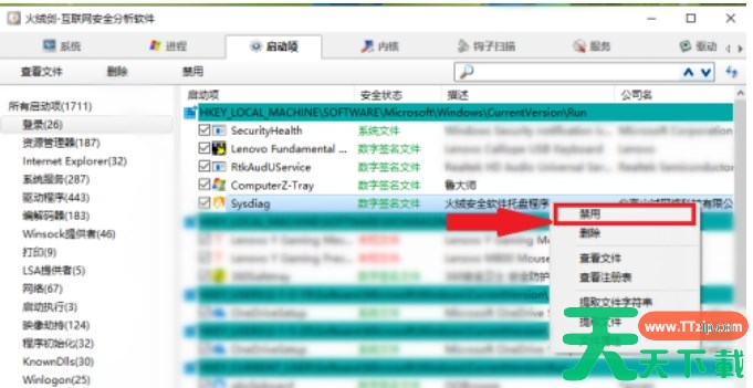 4、找到并禁用火绒安全软件托盘程序:在“启动项”列表中,找到“火绒安全软件托盘程序”项。