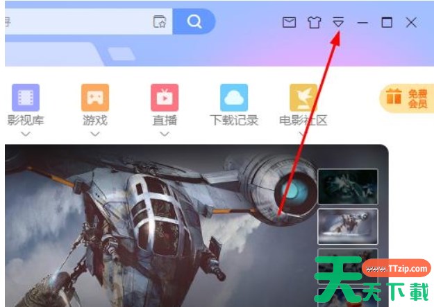 1、在电脑上启动迅雷,在主界面点击右上角的三角箭头,进入菜单。