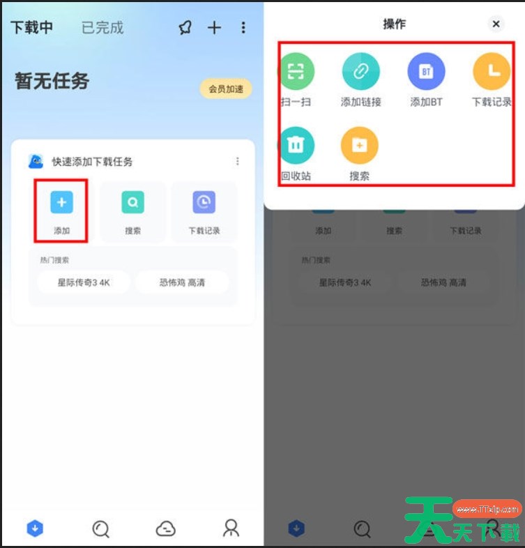 第一步:点击迅雷app,选择【添加】,找到合适的方式添加下载任务。