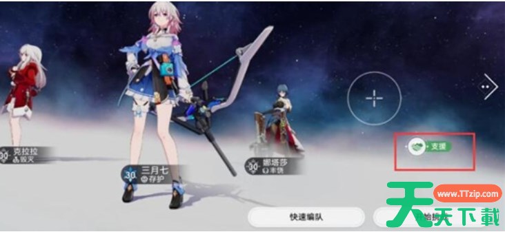3、点击支援:在队伍页面中,找到并点击“支援”选项。这个选项允许你选择和借用好友或其他玩家的角色。