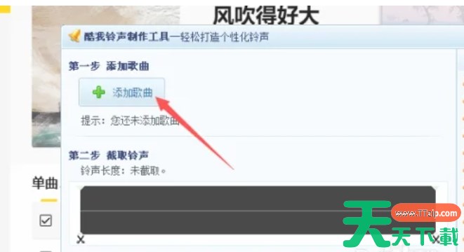 在铃声制作面板中,点击“添加歌曲”按钮,然后从您的电脑中选择您想要制作成铃声的音频文件。