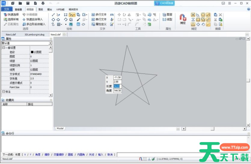 cad快速看图是一款操作简便、功能全面的CAD图纸编辑工具,那么cad快速看图怎么画五角星?cad快速看图画五角星的方法?下面就让天天下载Ttzip给大家解答下吧! cad快速看图怎么画五角星? 1、点击【新建】图标,新建一个CAD图纸文件。 2、在上方导航栏中,切换到【编辑器】窗口,选择【多边形线】工具。 3、在下方编辑窗口中,使用多边形线工具绘制五角星绘制,然后通过设置线条的端点位置和角度来实现画五角星即可。 以上就是天天下载Ttzip为您整理的cad快速看图怎么画五角星?cad快速看图画五角星的操作流程啦,希望能帮到您。 除特别注明外,本站所有文章均为 天天下载 原创,转载请注明出处来自 https://www.ttzip.com/211769.html