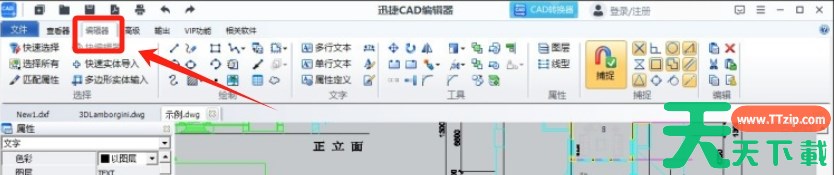 1、打开cad快速看图软件,在上方导航栏中,切换到【编辑器】窗口。