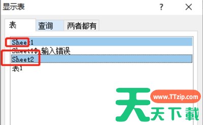 5、在“显示表”窗口中,选中你想要建立关联关系的两张表格(例如“工作表1”和“工作表2”),点击“添加”按钮,将这两张表格添加到关系窗口中。