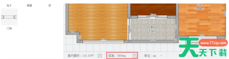 户型的层高要修改正确,案例中户型的层高为5800mm,如下图所示: