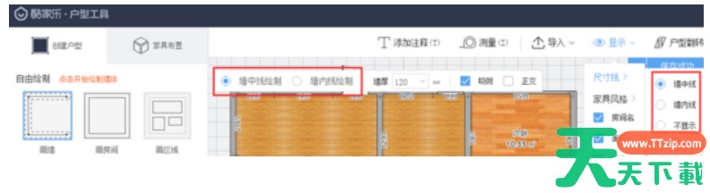 墙体的位置、长度和厚度尺寸要准确,尺寸的绘制形式分为墙中线和墙内线,尺寸的显示形式分为墙中线、墙内线和不显示,可根据自己的绘制和显示需要进行选择。
