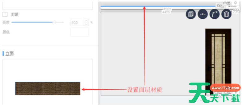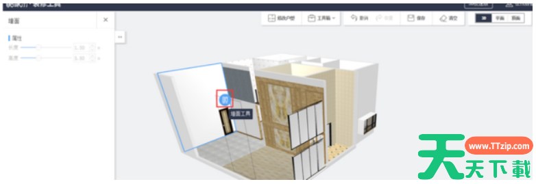 在装修工具3D模式下中选择房间的一面墙,点击下图红框中所示的按钮进入墙面编辑。