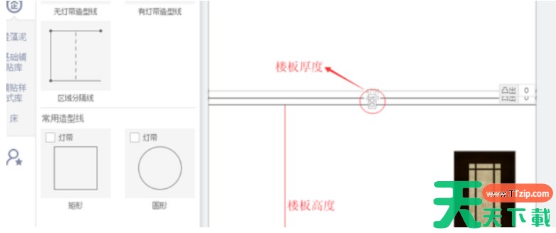 继续编辑墙面,选中Step2中画好的区域,根据楼板宽度调整区域凸出的值,如下图;