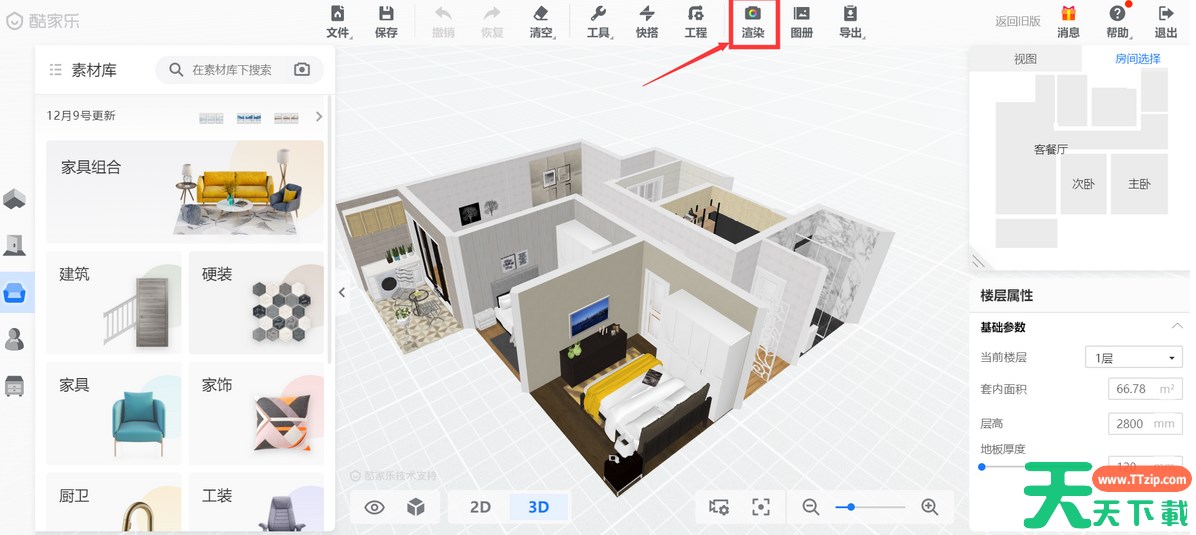 开始设计,点击上方的“渲染”,就可以去渲染咯