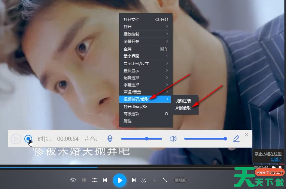 暴风影音是一款功能强大、操作简便的视频播放器,那么暴风影音怎么截取视频?暴风影音截取视频的方法?下面就让天天下载Ttzip给大家解答下吧! 暴风影音怎么截取视频? 1、首先打开暴风影音软件,在暴风影音中,找到并选择你想要截取的视频片段进行播放。 2、在视频播放过程中,右键点击视频画面,选择“视频转码/截取”选项,然后点击“片段截取”即可截取视频。 以上就是天天下载Ttzip为您整理的暴风影音怎么截取视频?暴风影音截取视频的操作流程啦,希望能帮到您。 除特别注明外,本站所有文章均为 天天下载 原创,转载请注明出处来自 https://www.ttzip.com/211868.html