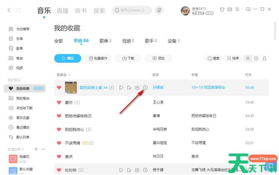 1.首先选择自己比较喜欢听的歌,在歌曲的后面点击三个点。