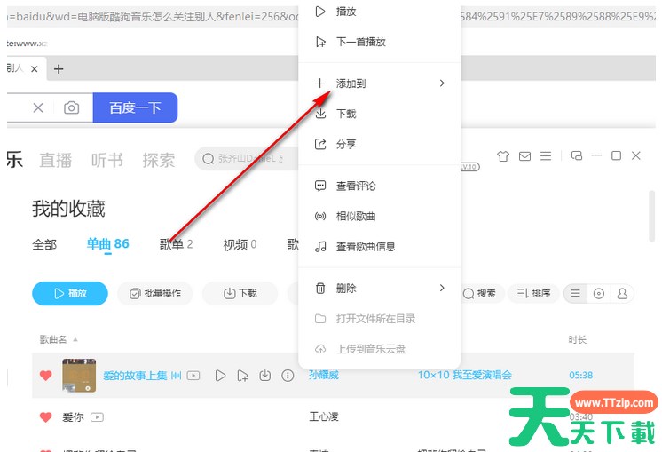 2.之后,会弹出来一个选项,选择【添加到】选项。