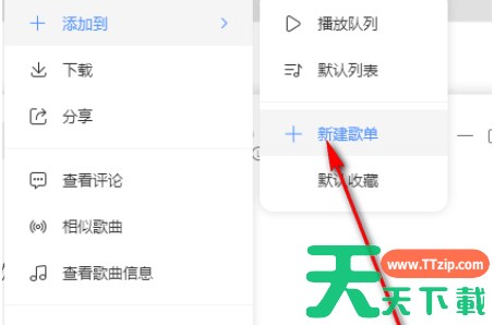 3.然后在复选项中可以看到有一个【新建歌单】,点击打开。